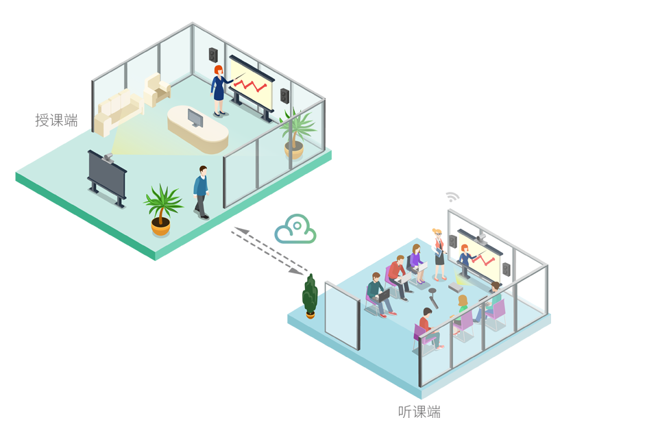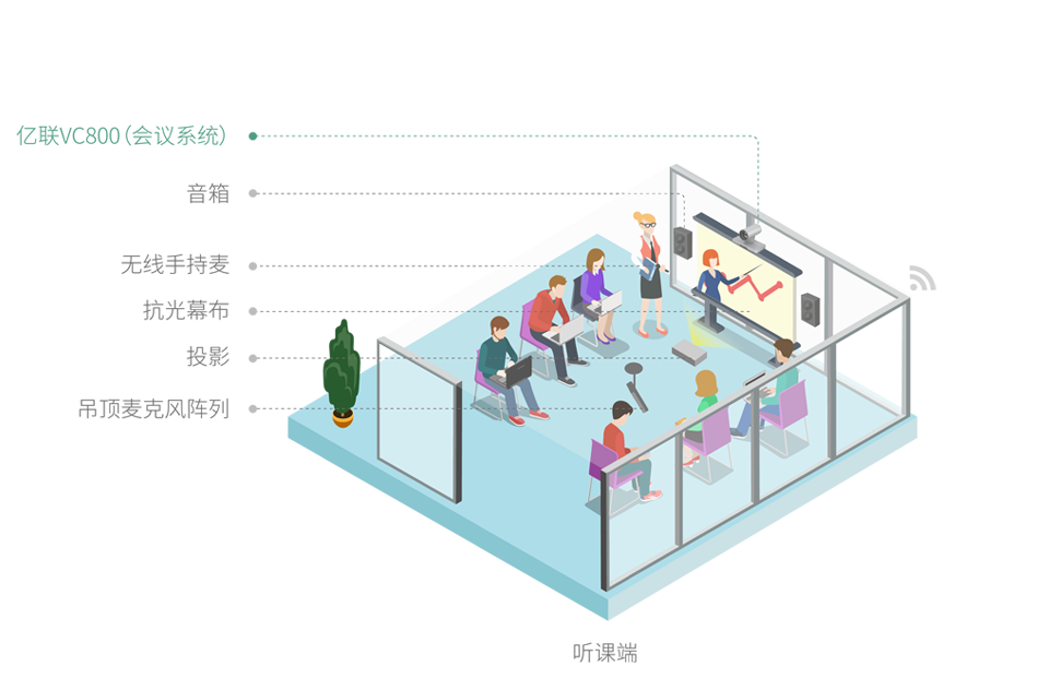 ? 通過(guò)部署億聯(lián)中小型會(huì)議終端VC500/VC800搭配投影機(jī)、投影幕布、互動(dòng)一體機(jī),并可選觸控電視實(shí)現(xiàn)多方書(shū)寫(xiě)互動(dòng),打造最優(yōu)質(zhì)的課堂現(xiàn)場(chǎng)效果。